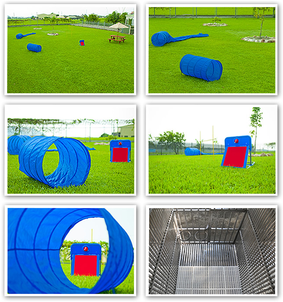 為了確保狗狗順利排汗,夏天則以大型水冷扇與冰塊代替冷氣幫助狗狗降溫, 讓狗狗生活得安全又舒適。溫馨訓練區